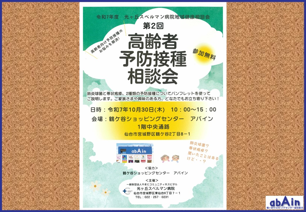 10月30日(木) 光ヶ丘スペルマン病院「高齢者予防接種相談会」を行います